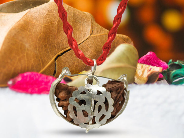 Unlike many other Rudrakshas, it lacks a natural hole, and is thus often set in a silver cap for wearing.