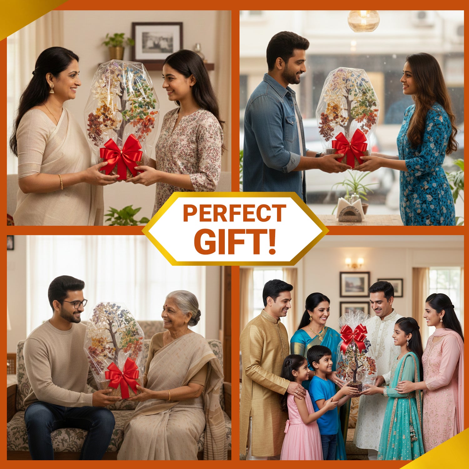 β’ Material : Natural 7 Chakra Crystals with Wire Tree & Base.
