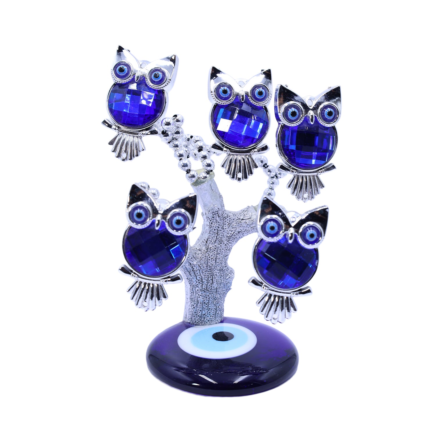 Bring home wisdom, protection, and prosperity with the Five Owl Evil Eye Tree. This stunning handcrafted piece combines the powerful symbolism of owls — guardians of wisdom — with the protective energy of the evil eye. The five owls sitting gracefully on a crystal tree are believed to ward off negativity, attract good fortune, and bring clarity of mind. A unique blend of art and spirituality, it makes a perfect décor piece as well as a powerful Vastu enhancer.