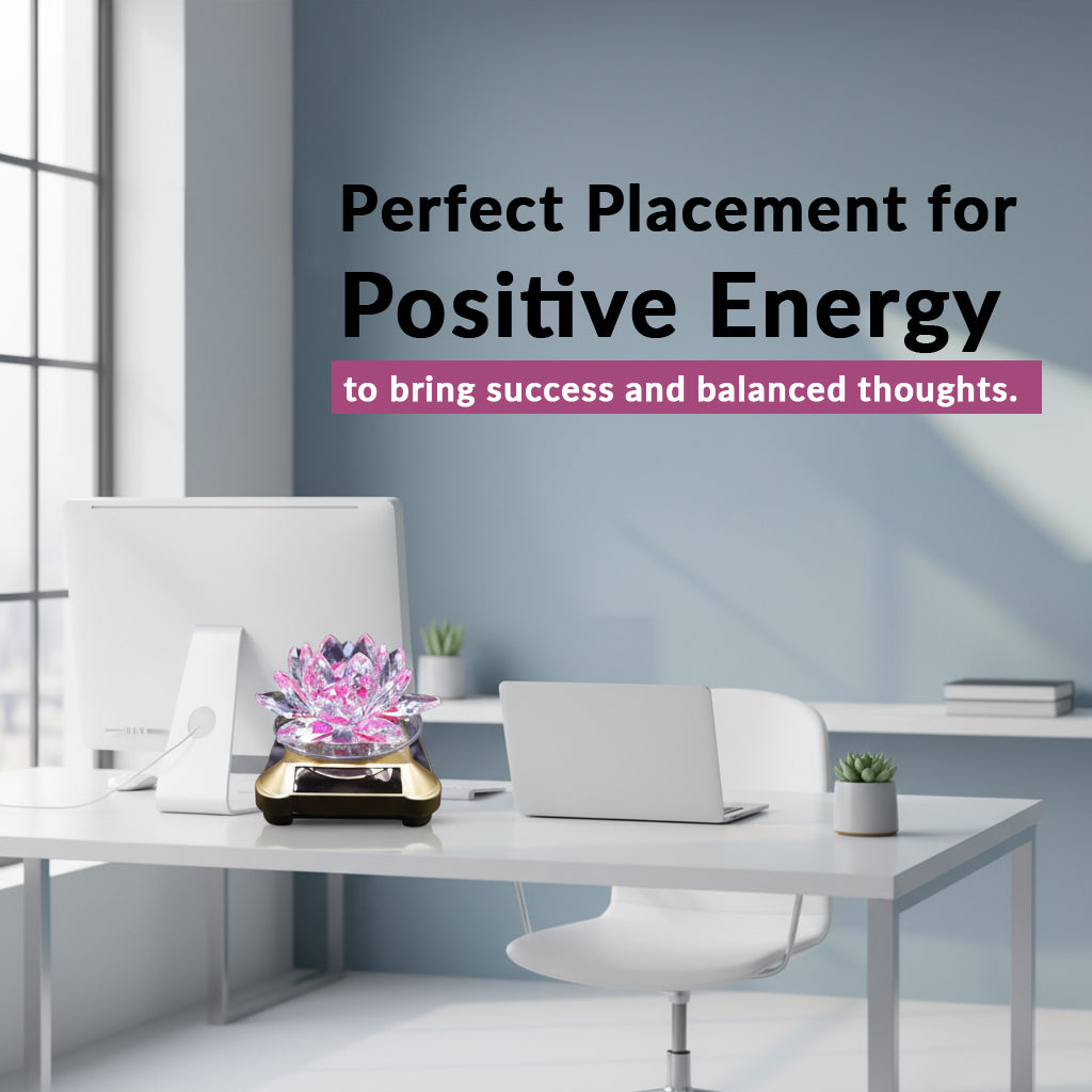 Our beautifully crafted Auto Rotate Crystal Lotus is a radiant symbol of purity, peace, and divine energy. The lotus flower, combined with the sparkling clarity of crystal, spreads positivity, balance, and spiritual growth. With its automatic rotation, it absorbs light and disperses rainbow reflections, filling your space with vibrant energy. A perfect addition for meditation, home décor, or gifting, this crystal brings good luck, prosperity, and serenity.