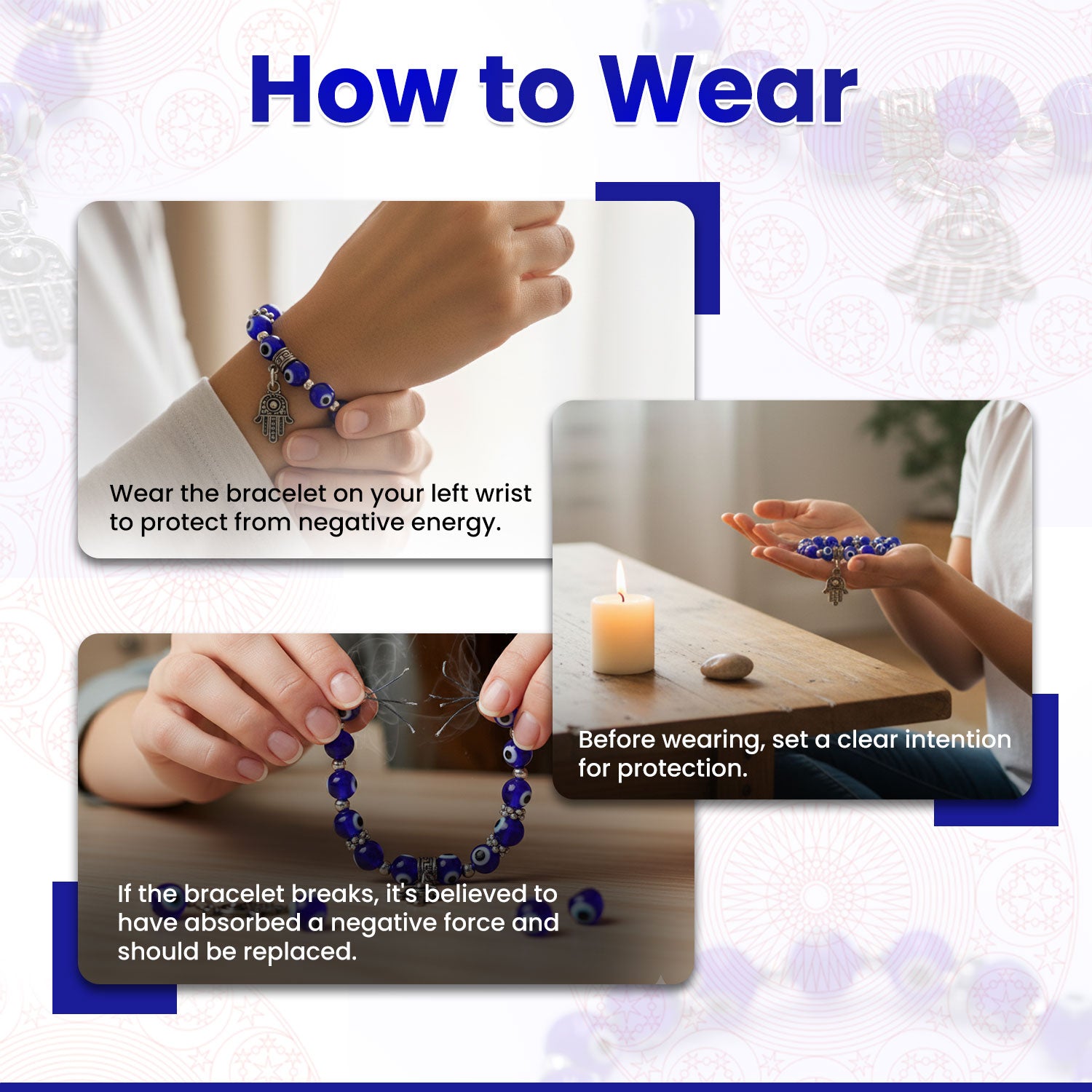 Enhance your inner peace and confidence with our beautifully crafted Evil Eye Blue Bracelet, with rich blue beads and adorned with a protective Hamsa charm. Known for its soothing vibrations, this bracelet helps reduce stress, clears negative thoughts, and promotes emotional balance. Wearing this bracelet not only boosts self-expression but also strengthens intuition and inner clarity. A perfect blend of style and spirituality, it keeps your mind calm and your energy positive throughout the day.
