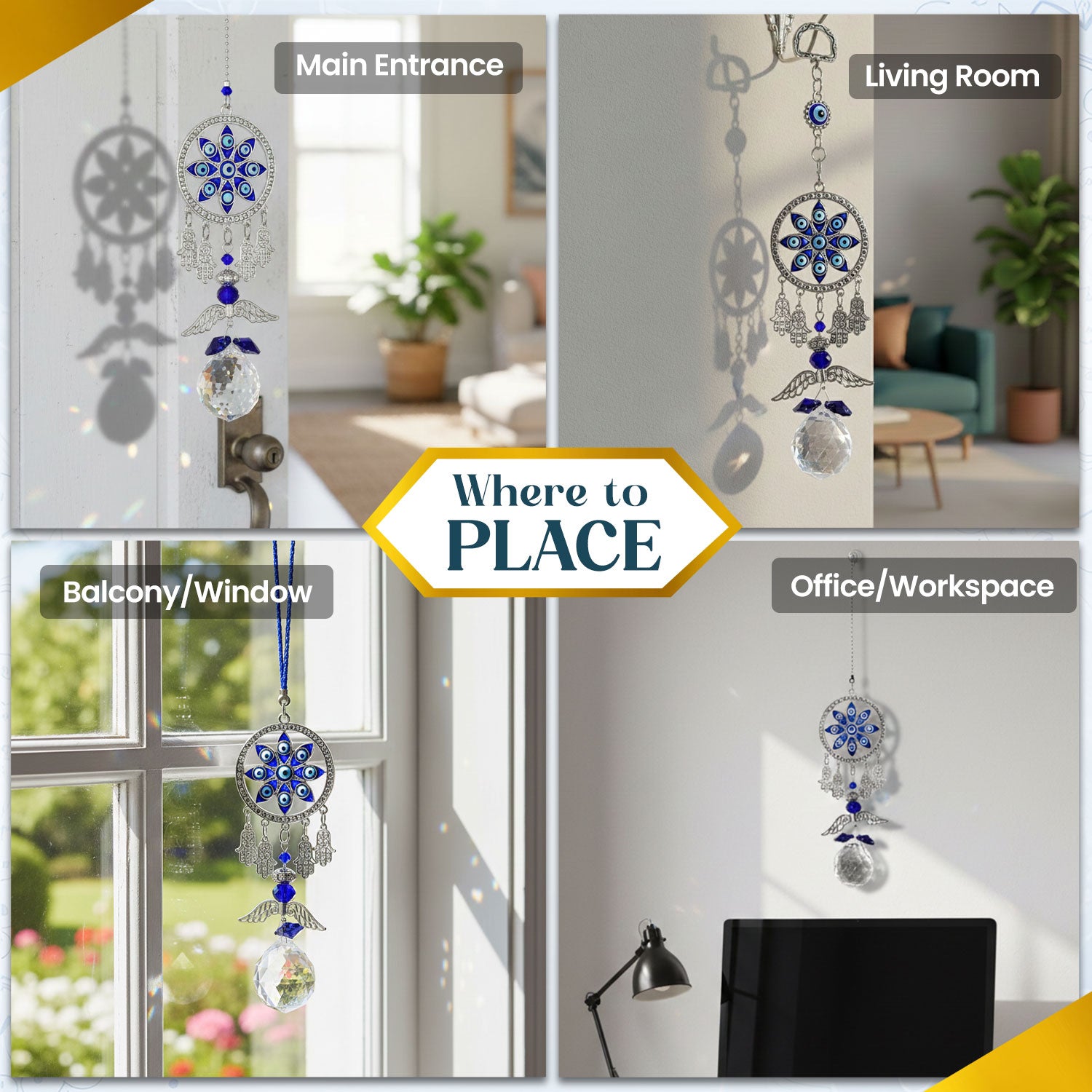 This Evil Eye Wind Chime has completely changed the vibe of my balcony. The crystal ball sparkles beautifully in sunlight and the sound is so calming.