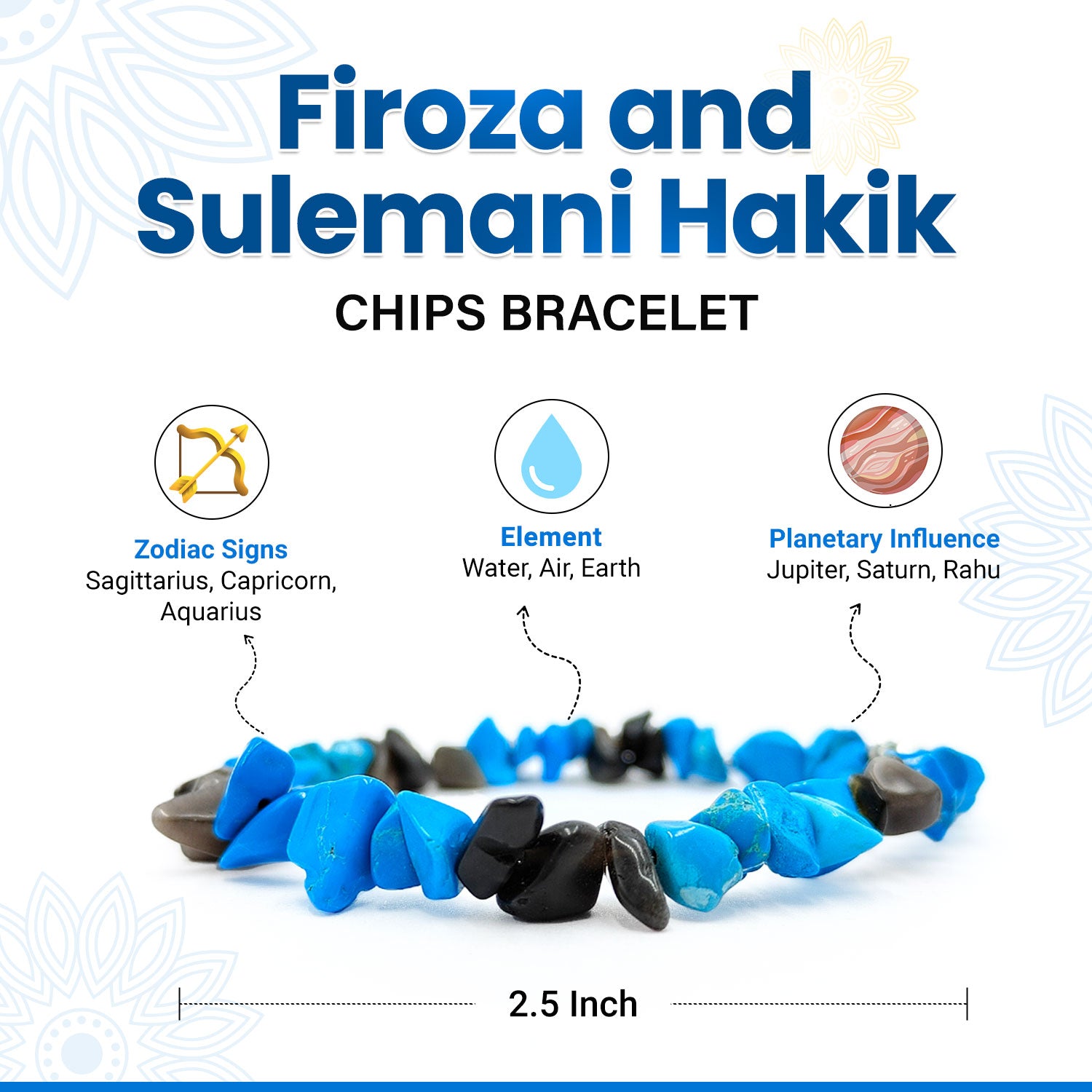 The Firoza and Sulemani Hakik Chips Bracelet is a powerful fusion of protection, wisdom, and balance. Firoza (Turquoise) brings calmness, good fortune, and spiritual clarity, while Sulemani Hakik (Black Agate) offers grounding, strength, and shielding against negativity. Together, they form a stylish and meaningful accessory that enhances both inner peace and outer protection.