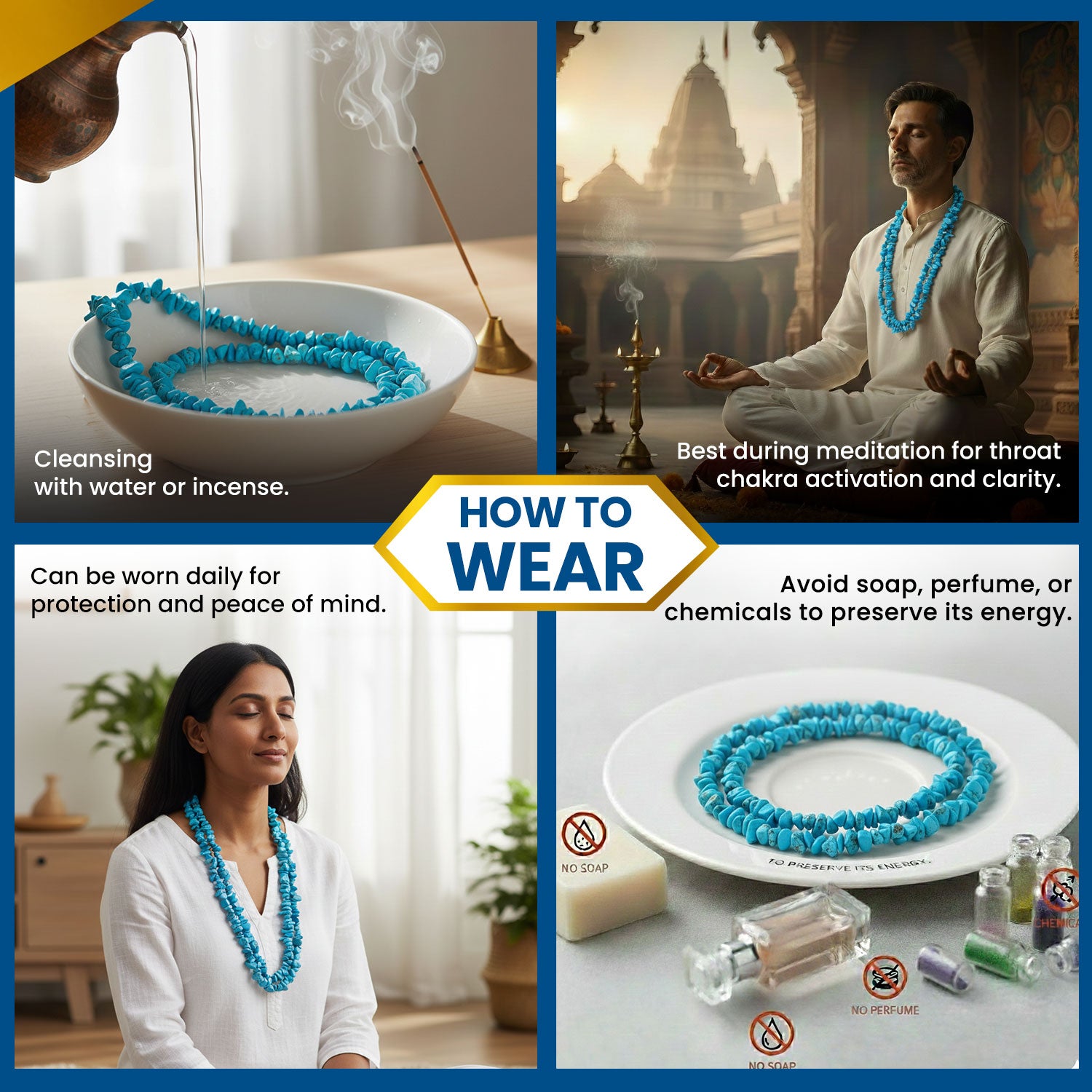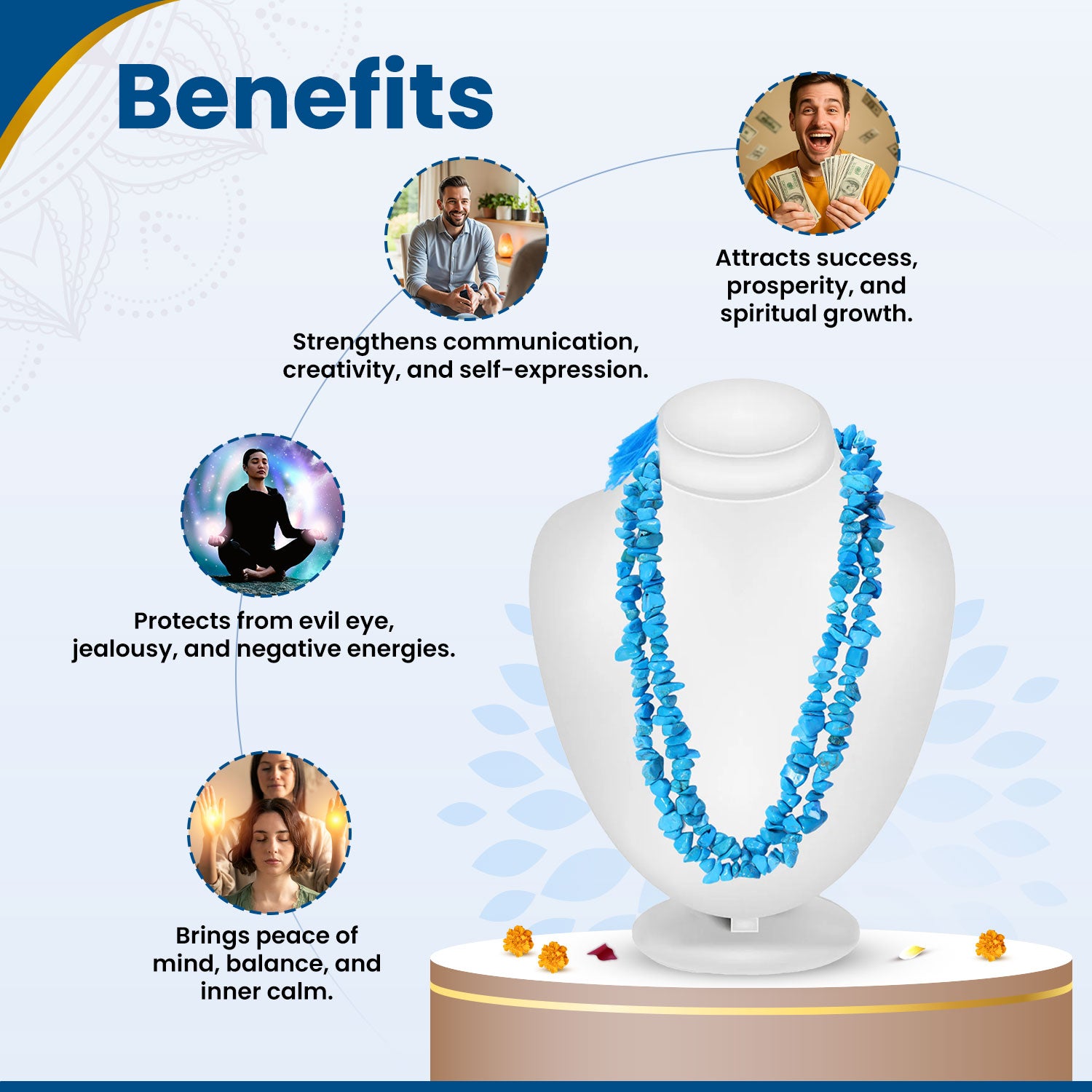 The Firoza Chips Mala is a powerful stone of healing, protection, and positivity. Known as the “Stone of Communication & Good Fortune,” Firoza has been treasured for centuries across cultures for its ability to ward off evil, attract prosperity, and strengthen relationships. Its serene blue-green hues connect with calming energies, bringing emotional balance, spiritual growth, and clarity of thought. This mala is perfect for meditation, daily wear, or as a protective charm, inviting peace and blessings into one’s life.
