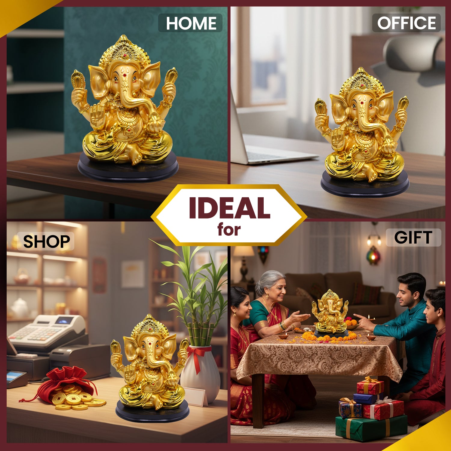 - Placed in the living room, entrance, or puja ghar (home temple).