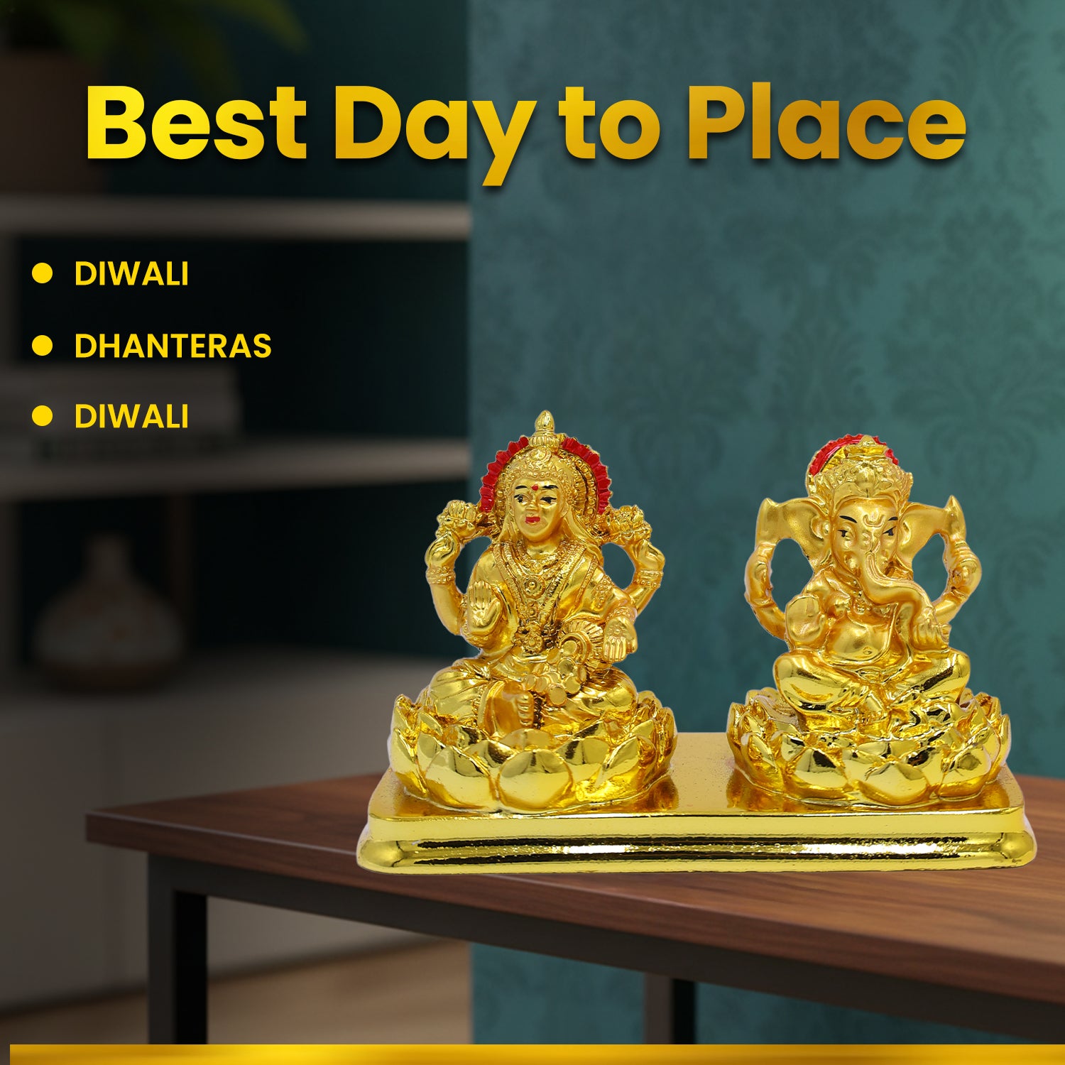 The Golden Lakshmi Ganesh Idol is a beautifully crafted symbol of prosperity, wisdom, and divine blessings. Featuring Goddess Lakshmi—the harbinger of wealth and abundance. alongside Lord Ganesha—the remover of obstacles and god of wisdom. this idol is a must-have for every home, office, or business space.