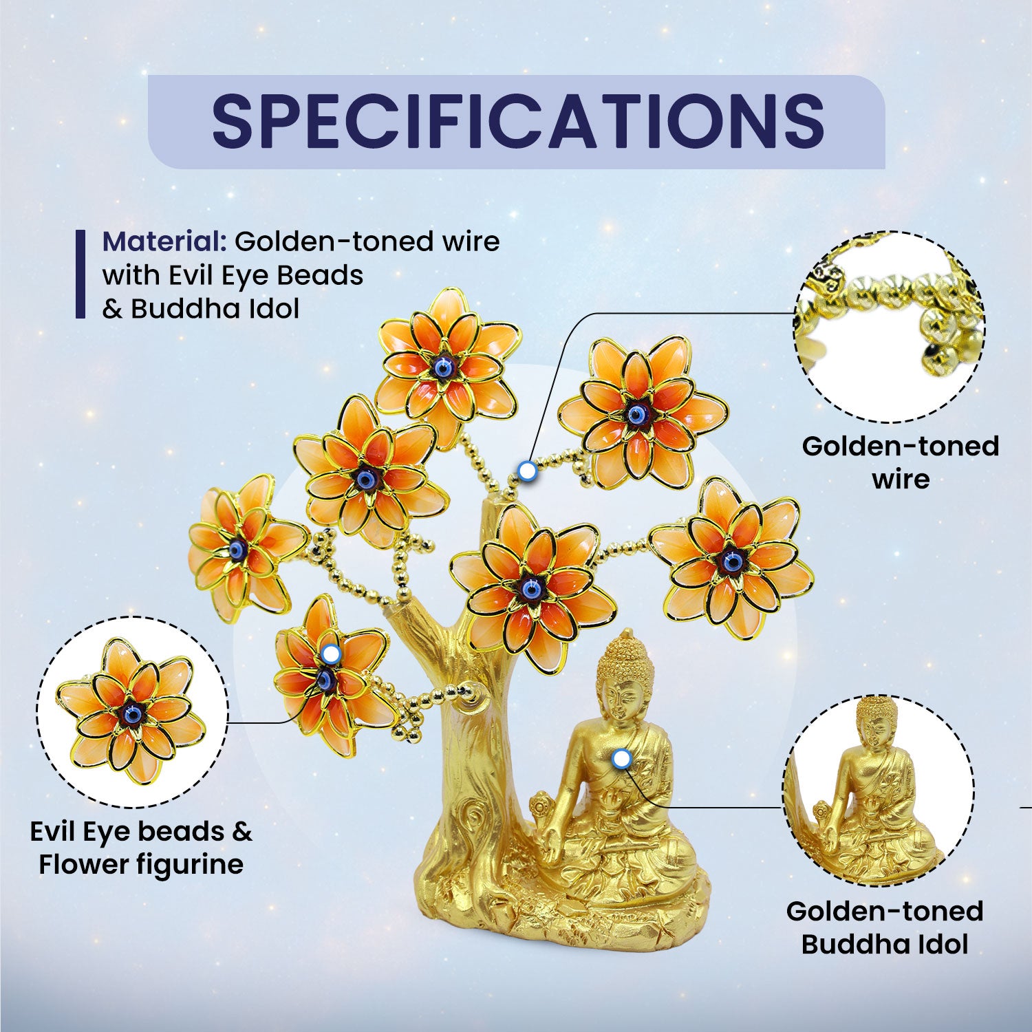 Invite peace, prosperity, and protection into your life with the Golden Lord Buddha Evil Eye Tree. Crafted with golden-toned branches adorned with shining evil eye beads, this tree features a serene Buddha idol at its base — symbolizing inner calm, wisdom, and spiritual awakening. While the evil eye beads protect you from negativity, the presence of Lord Buddha radiates harmony, mindfulness, and divine positivity. A perfect spiritual décor for your home or workplace.