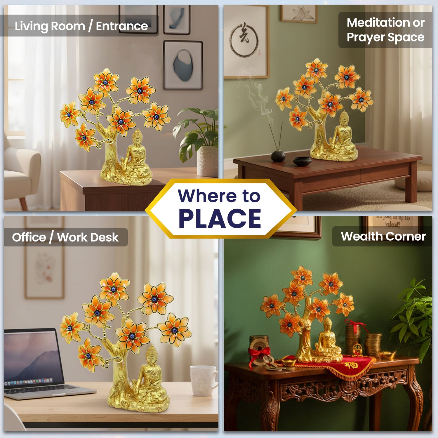 • Design: Decorative spiritual tree with Lord Buddha at base.