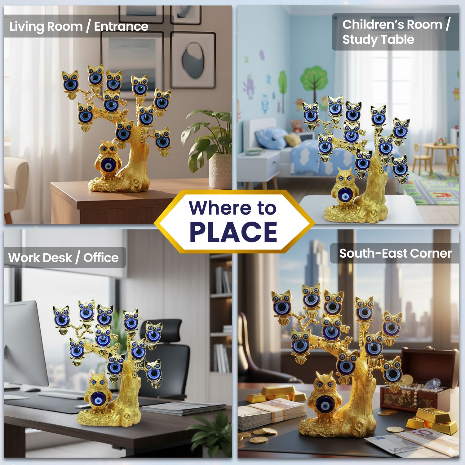 • Design : Golden Owl with Child perched beautifully on Evil Eye Tree.