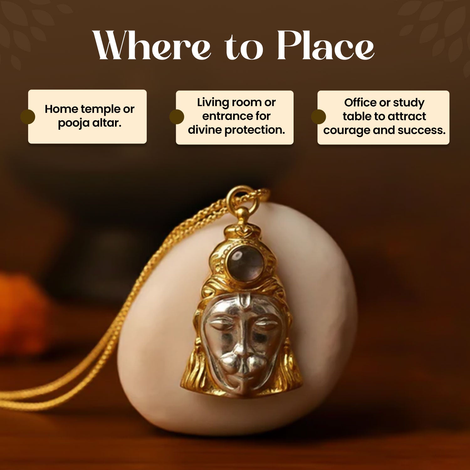A powerful spiritual yantra engraved with the sacred verses of Hanuman Chalisa. It radiates divine energy, courage, and protection — removing fear and negativity while blessing your home with strength and devotion. Perfect for those seeking Lord Hanuman’s divine guidance and blessings in every aspect of life.
