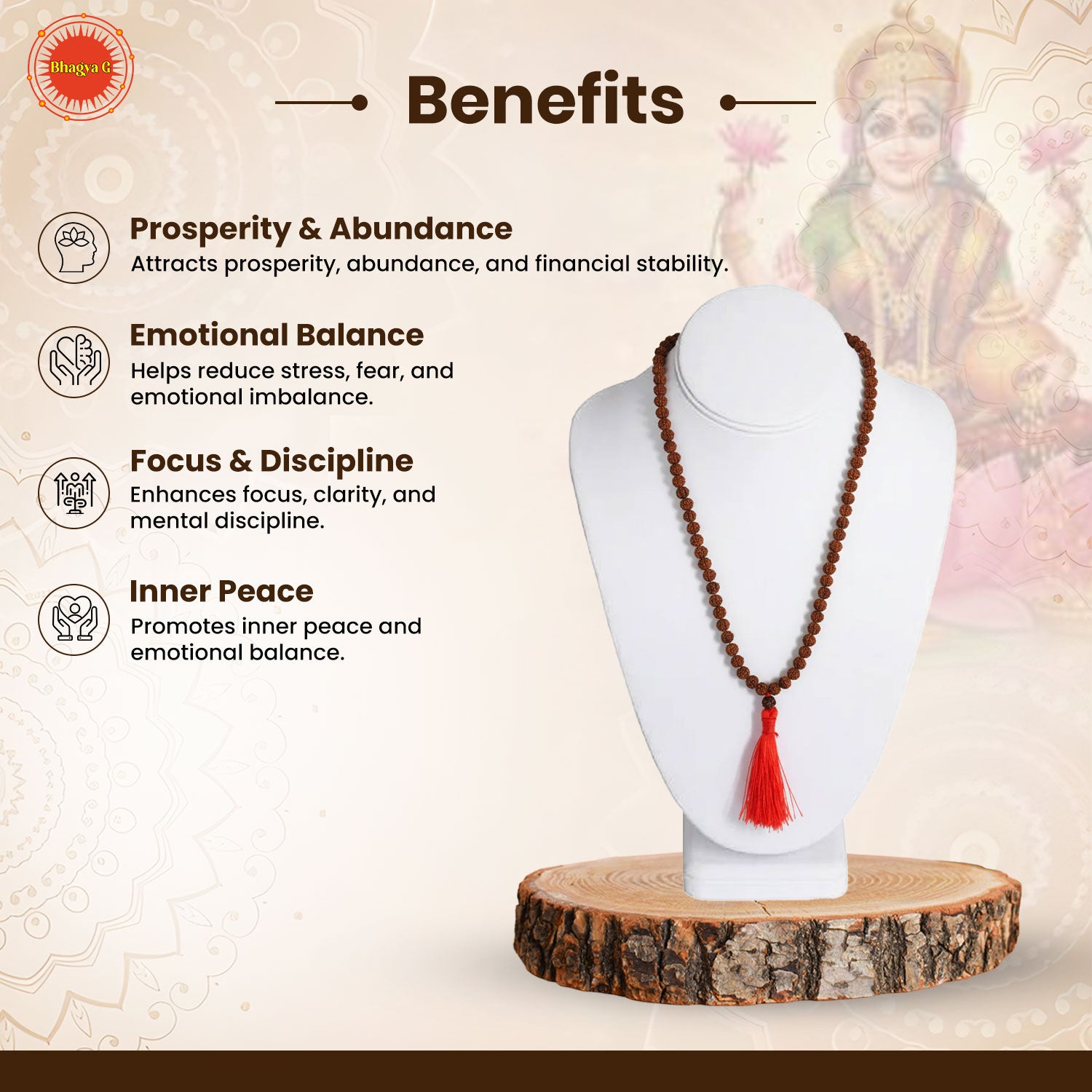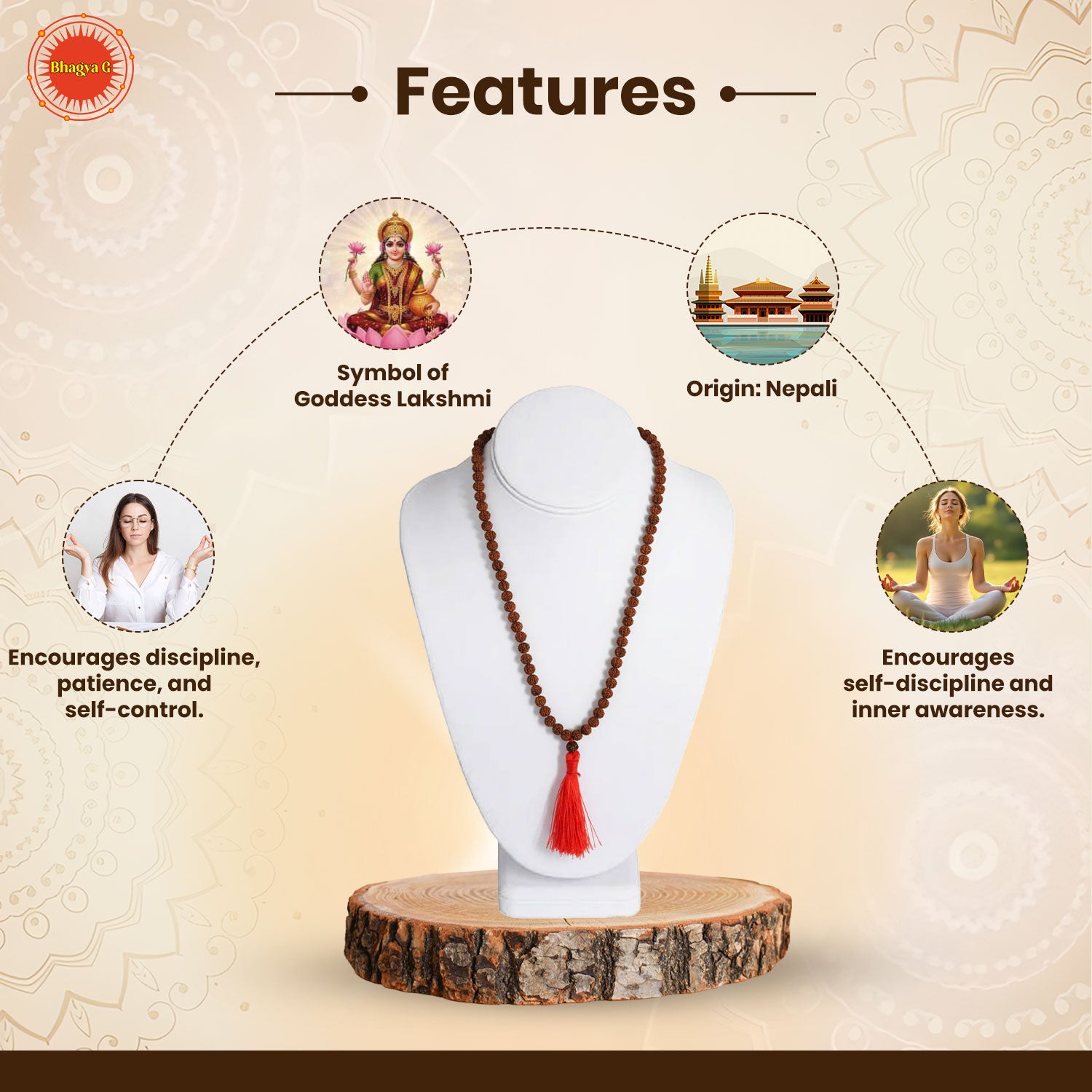 The Indonesian 7 Mukhi Rudraksha Mala is a sacred spiritual accessory crafted to attract prosperity, balance, and inner strength. Made with authentic Indonesian 7 Mukhi Rudraksha beads in a traditional 108-bead count, this mala supports spiritual discipline and mindfulness. Each bead carries calming vibrations that help reduce stress and promote emotional stability. Ideal for mantra chanting, meditation, and daily spiritual practice, it enhances focus and clarity. This mala is perfect for those seeking financial stability, peace, and spiritual growth.
