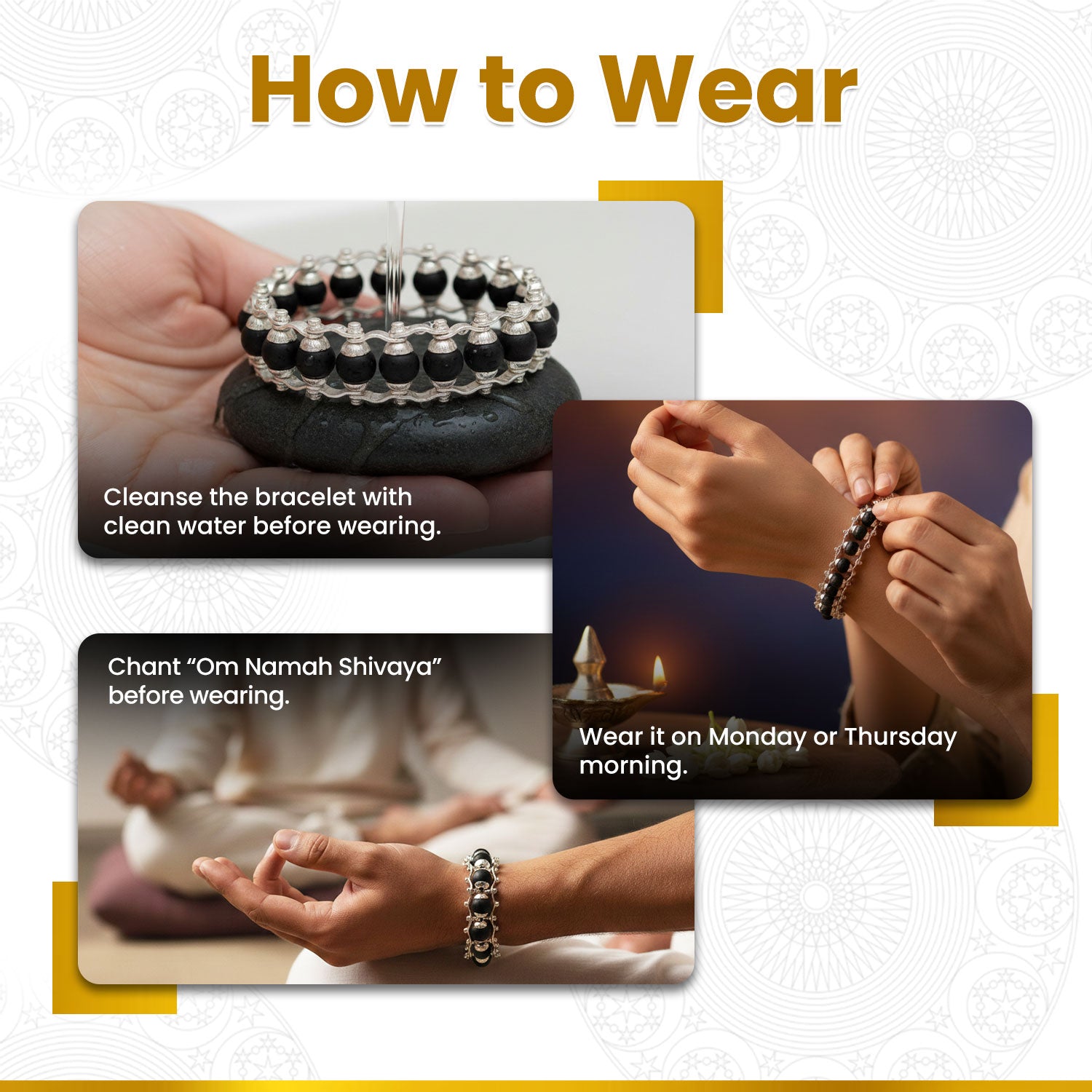• Chant “Om Namah Shivaya” before wearing.