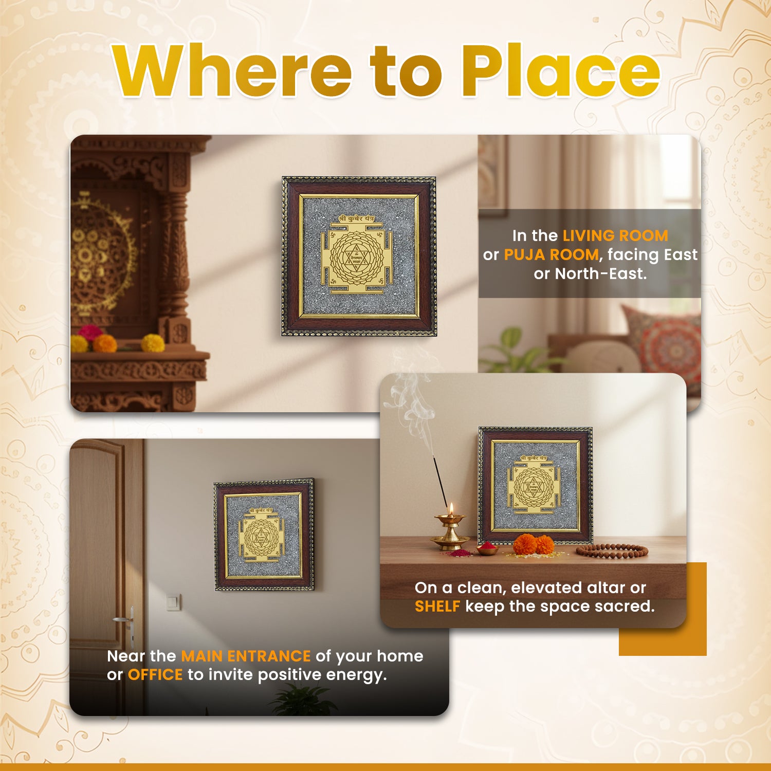 • Enhances peace, prosperity, and spiritual well-being in the home.