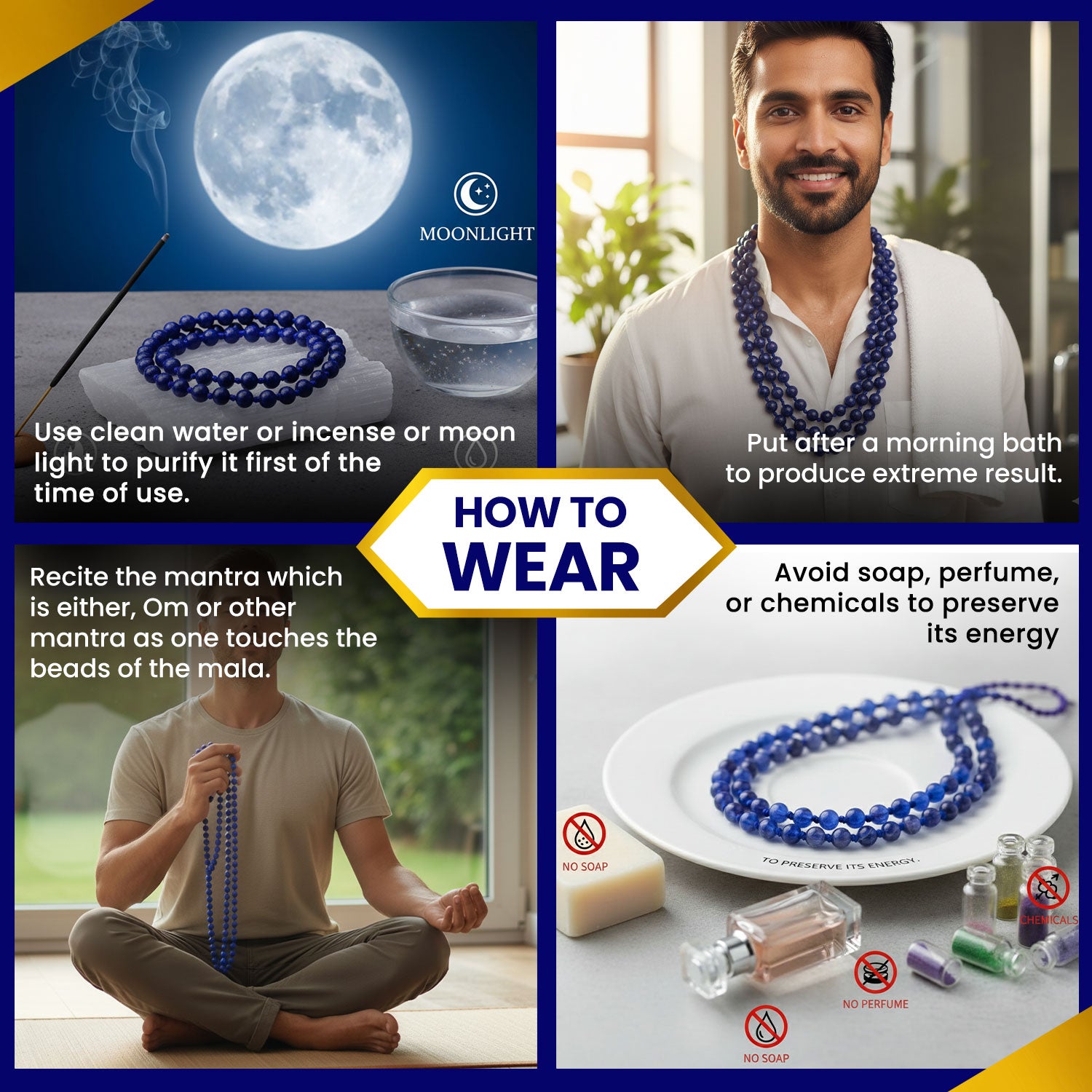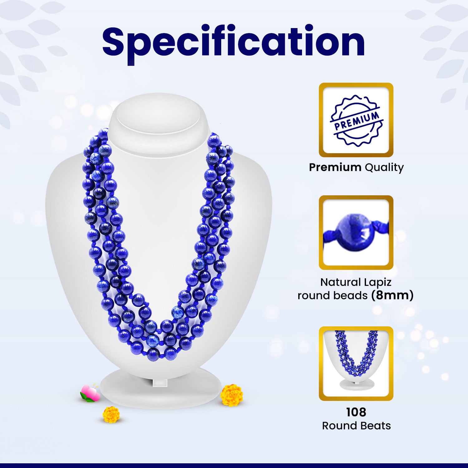 Collect the peace, intuition and the higher guidance, on a daily journey. It is made out of genuine Lapis Lazuli beads, and this mala gives out the power of wisdom, clear thinking, and expression. It is also referred to as the Stone of Truth; it assists you to release inner strength, speak with the authority, and to communicate with higher awareness. Lapiz Mala will open up your mind and spirit whether you put them on daily or use them during spiritual practice or meditation.