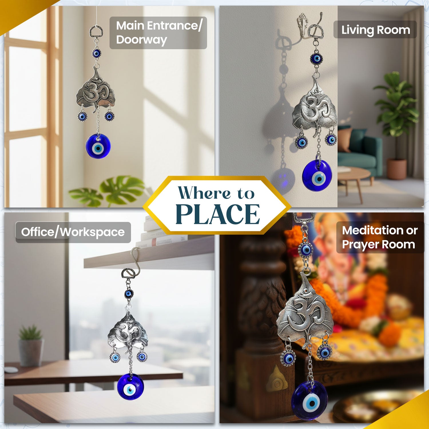 • Material: Metal Leaf design with Om symbol and Evil Eye beads.