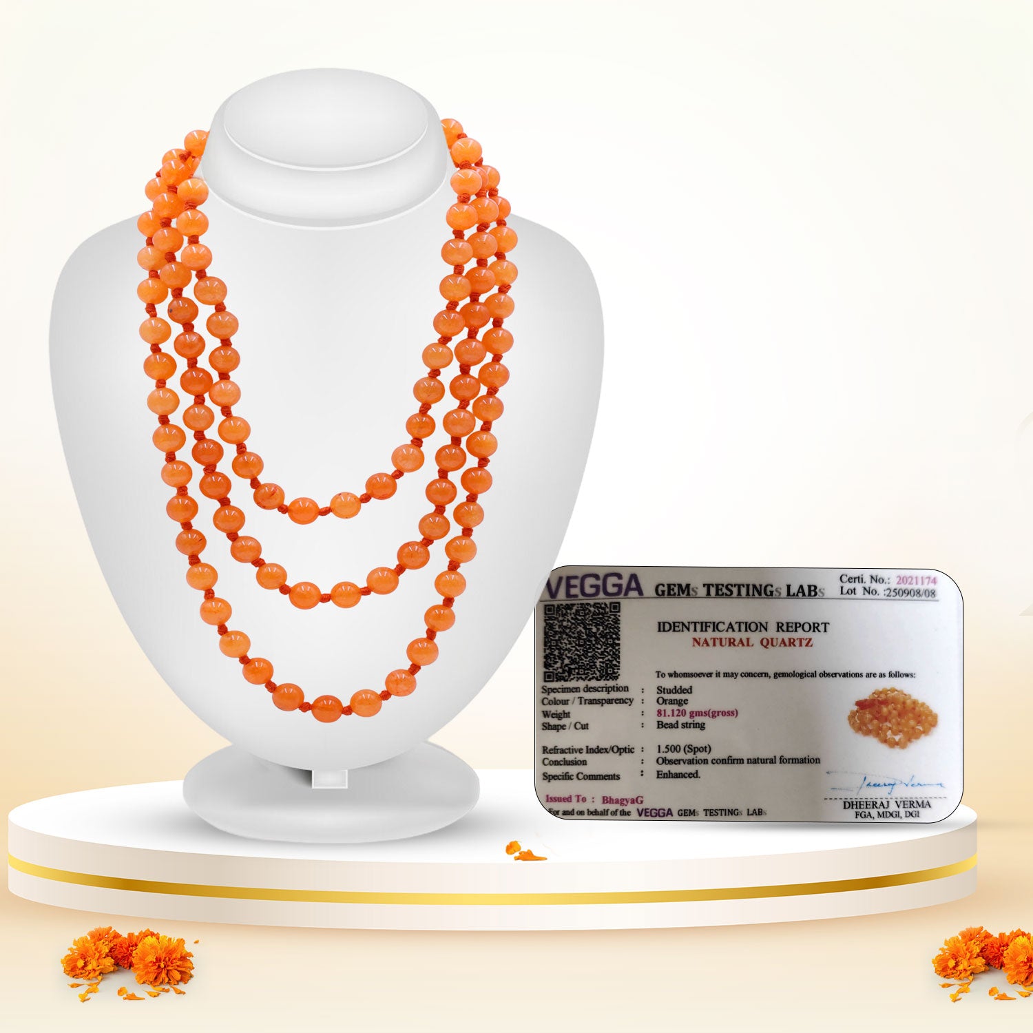 Explore creativity and joy with the Orange Aventurine Mala the stone of opportunity and positivity. Known for its vibrant energy, this mala uplifts the spirit, boosts confidence, and get up hidden talents. It works as a gentle healer for emotional wounds while opening doors to new opportunities and success. Wearing it brings warmth, motivation, and a zest for life, making it perfect for both spiritual practices and daily wear.