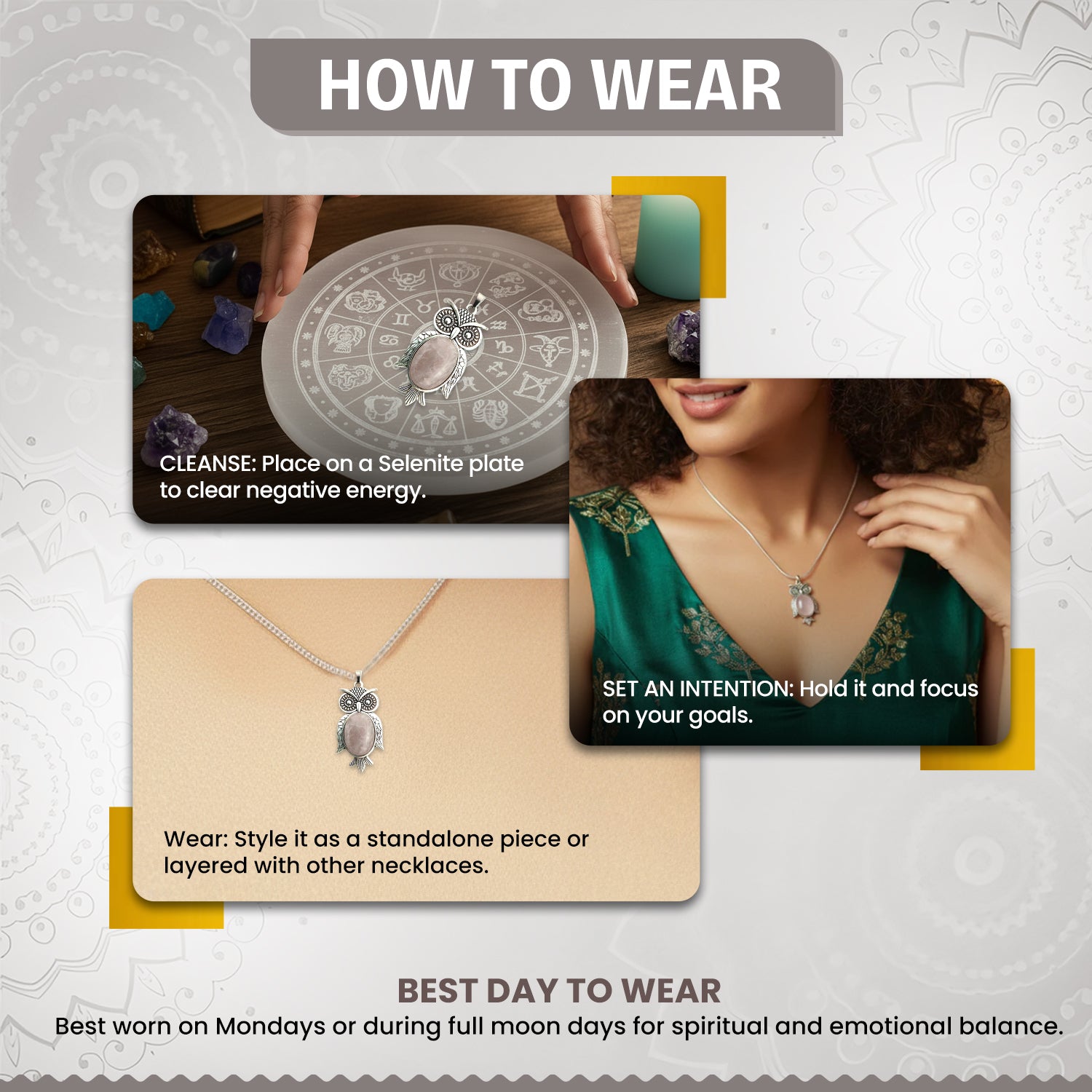 Ye pendant sirf sundar nahi, balki lucky bhi lagta hai. Rose quartz ke stone se soft energy milti hai. Owl design unique aur classy hai. Har kisi ne poocha, kahaan se liya!