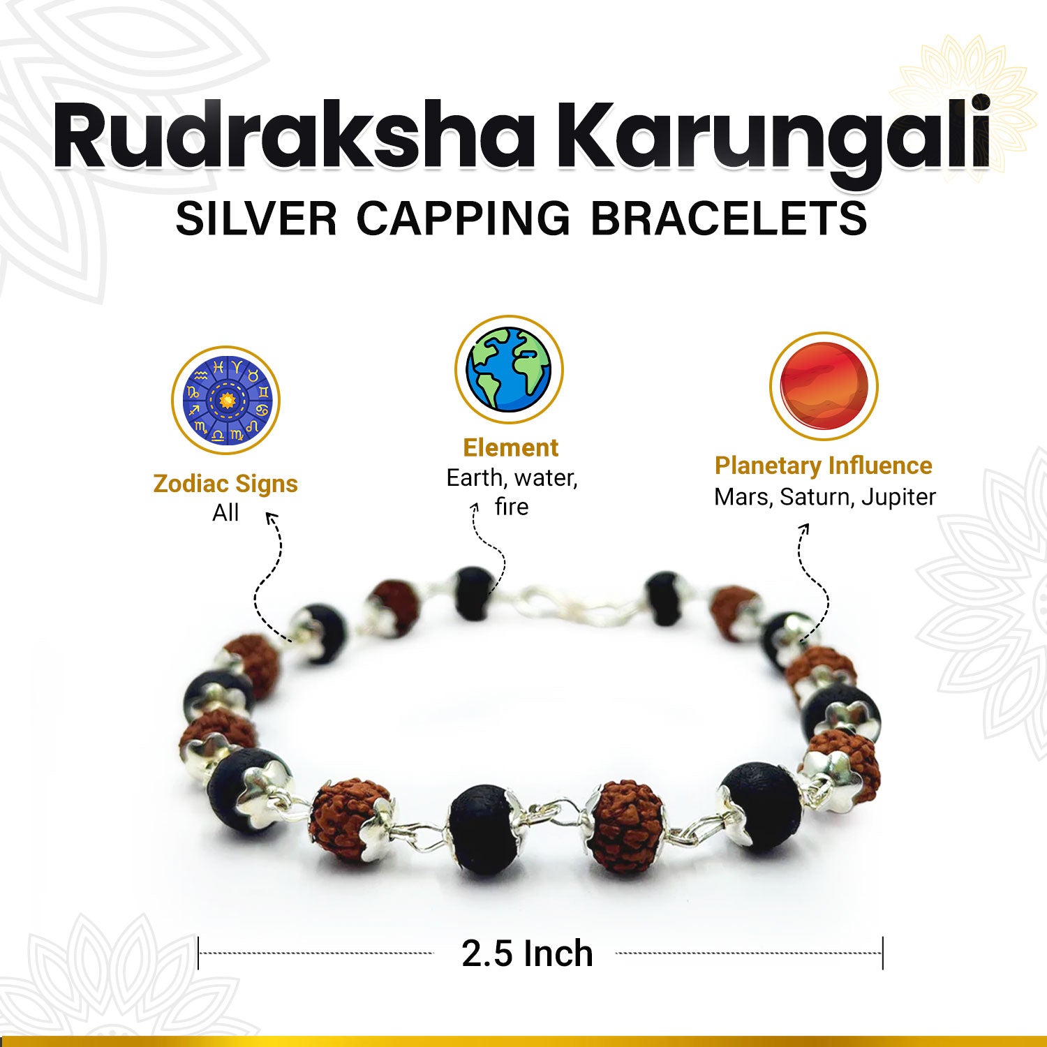 Rudraksha Karungali Silver Capping Bracelets