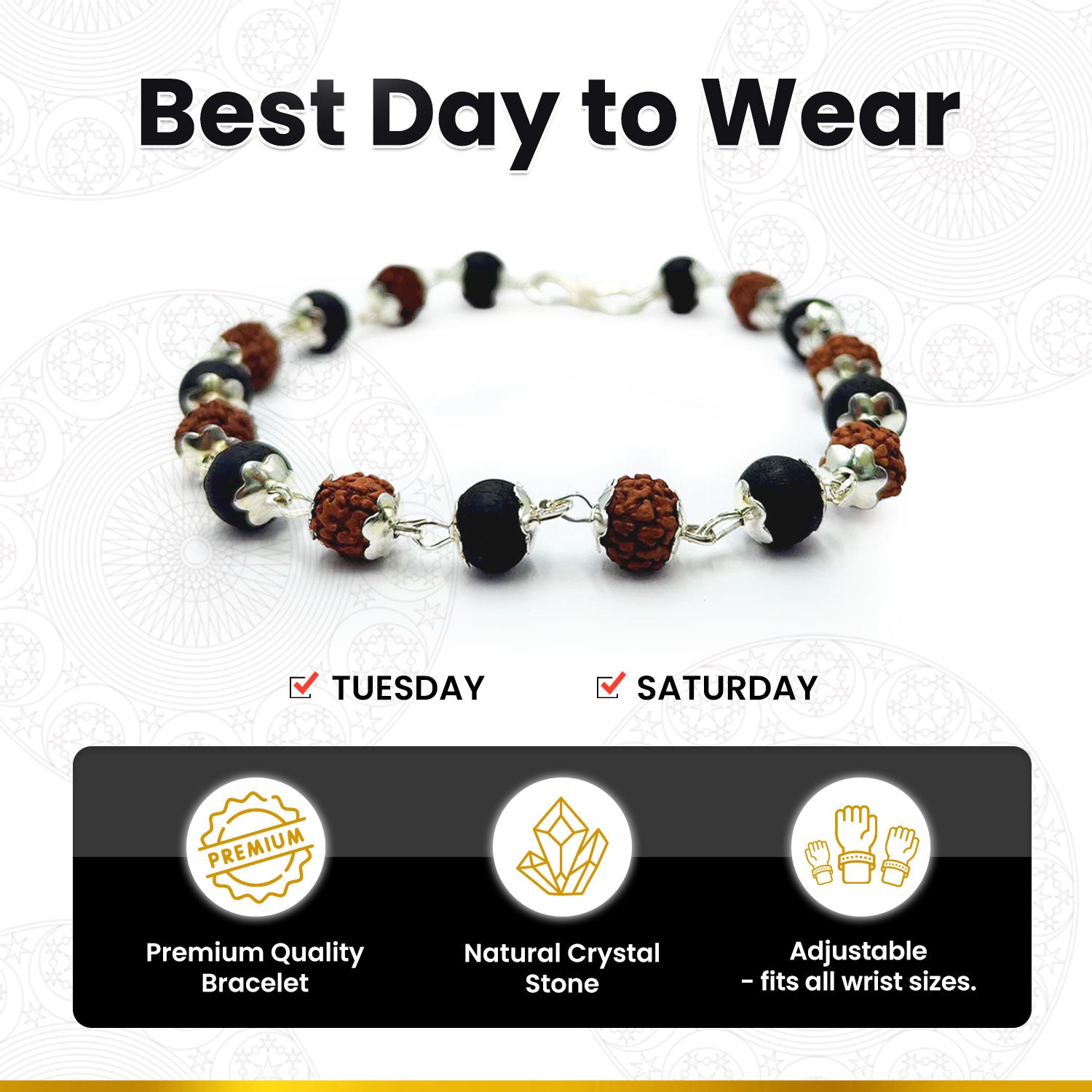 This Rudraksha Karungali Silver Capping Bracelet is a luxurious blend of spiritual power and refined craftsmanship. Rudraksha beads bring divine calmness and mental clarity, Karungali offers protection and grounding, while silver caps add purity and elegance. Together, they create a bracelet that supports emotional balance, reduces stress, and enhances spiritual discipline. Perfect for daily wear, meditation, and professional life, this piece offers both energetic protection and an elevated aesthetic.