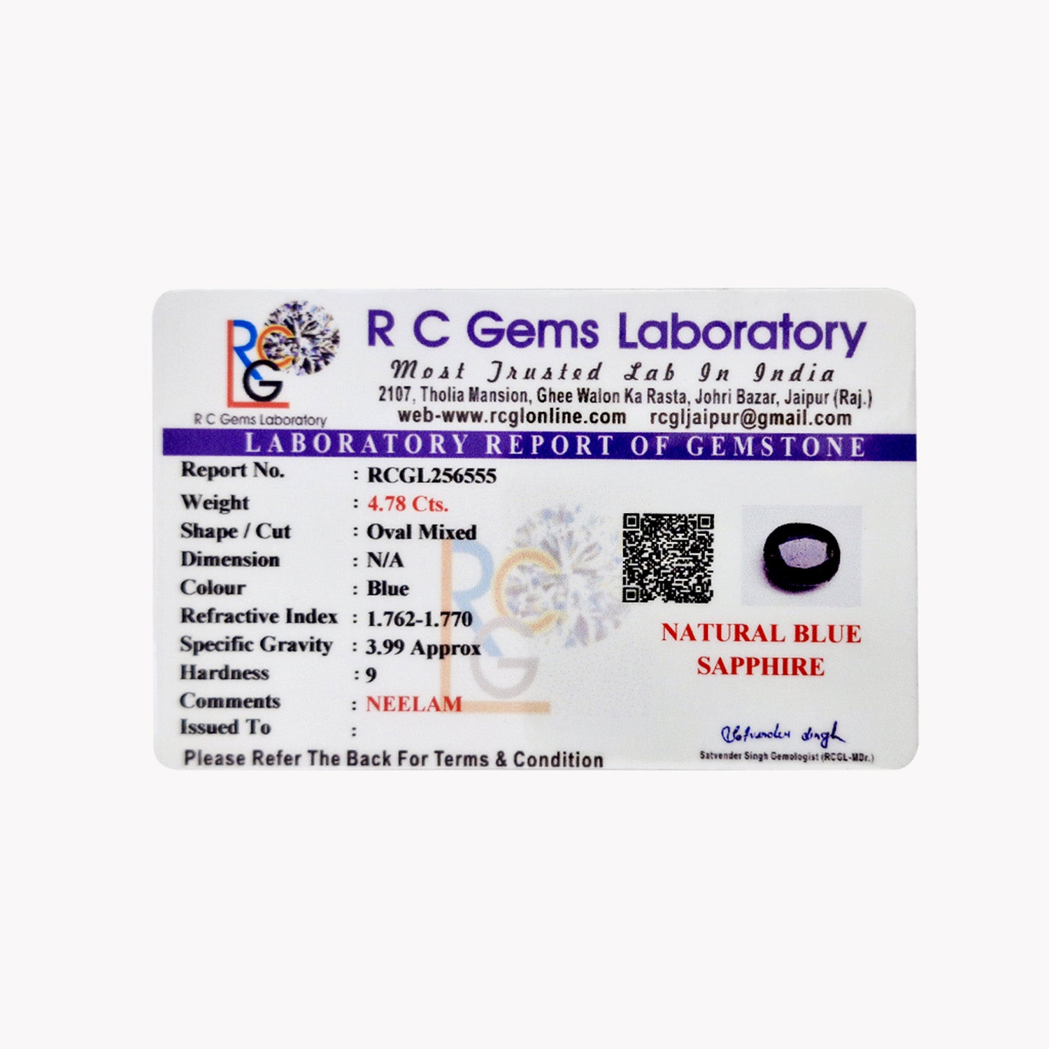 Neelam (Blue Sapphire) 4.78 Cts.