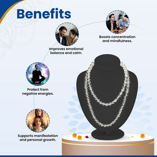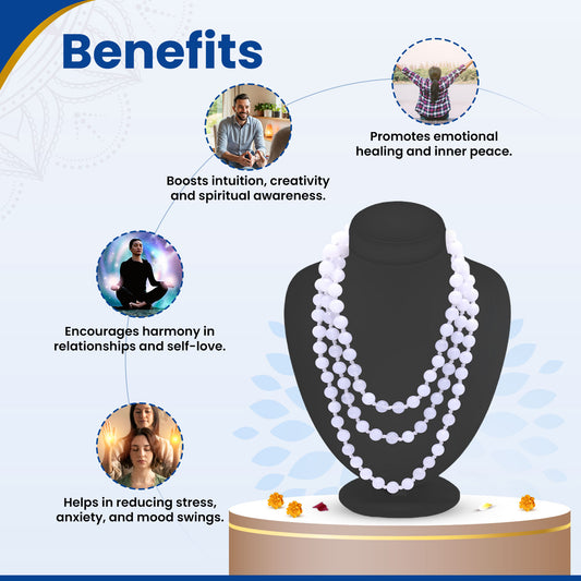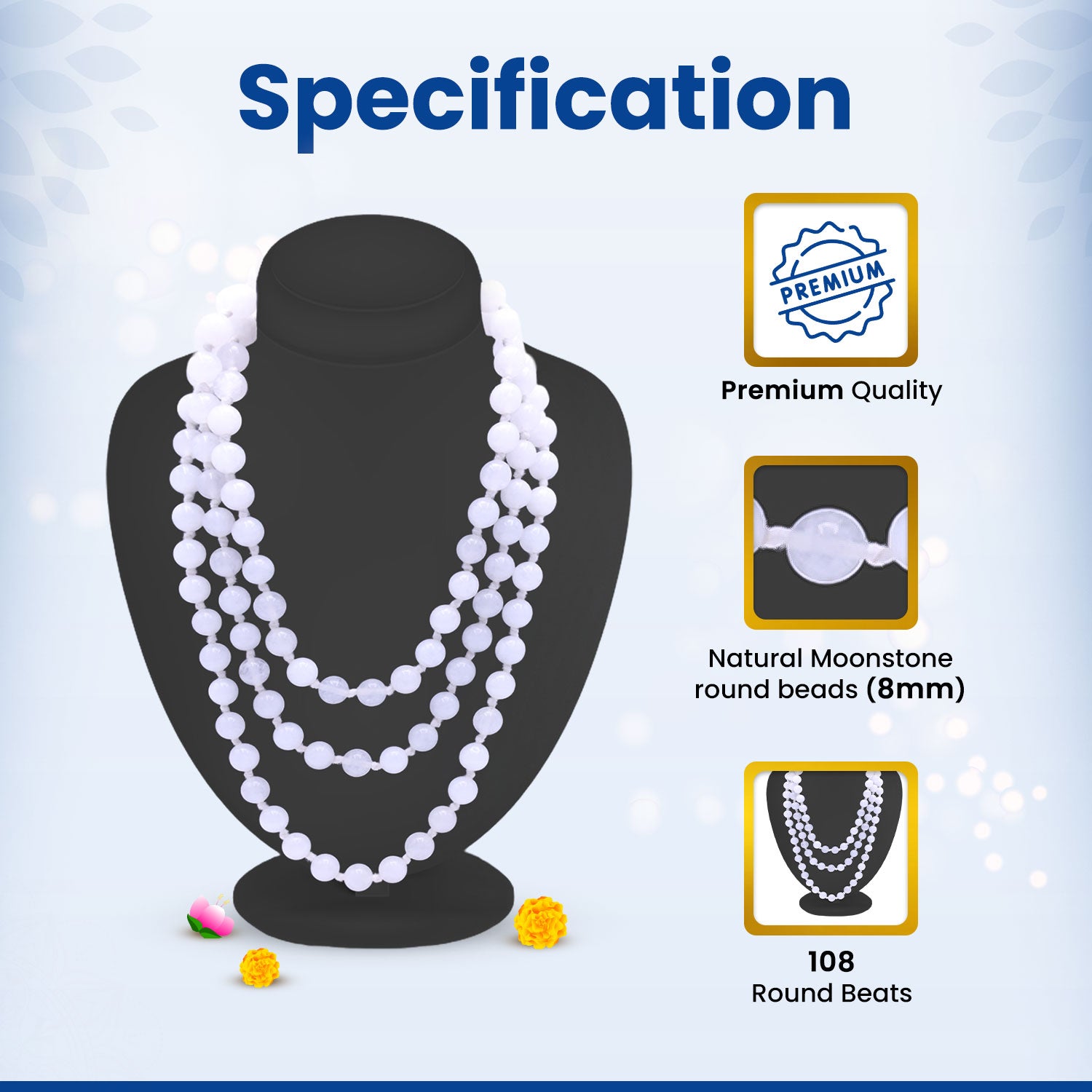 Embrace calmness and divine feminine energy with the enchanting Moonstone Mala. Known as the stone of new beginnings, it brings emotional balance, enhances intuition, and guides you through life’s cycles with grace. Its soothing glow promotes peace, harmony, and inner strength, making it a perfect companion for spiritual seekers and dreamers.